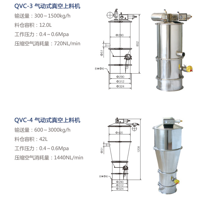 氣動式真空上料機是利用壓縮空氣通過真空發(fā)生器產(chǎn)生高真空實現(xiàn)對物料的輸送,不需要機械式真空泵,具有結(jié)構(gòu)簡單、體積小、免維修、噪音低、控制方便、消除物料靜電和符合GMP要求等優(yōu)點。真空發(fā)生器產(chǎn)生的高真空,使被輸送的物料杜絕了分層現(xiàn)象,保證了混合物料成份的均一性,是壓片機、膠囊填充機、干法制粒機、包裝機、粉碎機、振動篩等機械自動上料的設(shè)備。