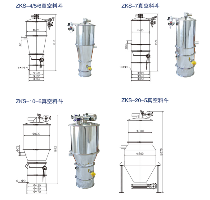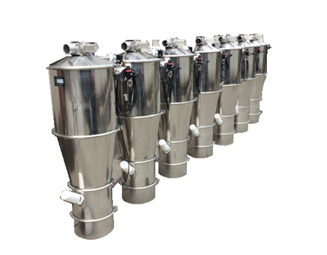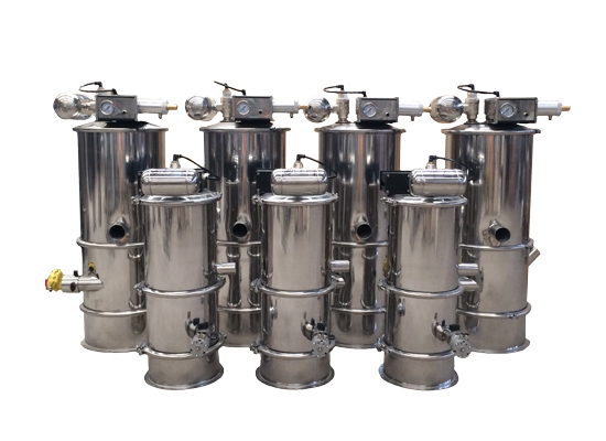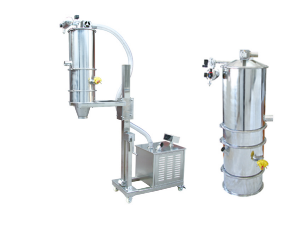 真空加料機(jī)由真空泵(無油、無水)、真空料斗、過濾器(有聚酯覆膜過濾器、PE過濾器、316L不銹鋼過濾器或鈦金屬過濾器多種選擇)、壓縮空氣反吹裝置、氣動(dòng)放料門裝置、料位自動(dòng)控制裝置、不銹鋼吸料咀、輸送軟管等組成,整套系統(tǒng)設(shè)計(jì)合理、制造精美。