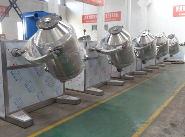 ? 混料器具有三維運(yùn)動(dòng),從而使物料在流動(dòng),剪切,平移,擴(kuò)散的作用下,使其由集聚到分散狀態(tài)并完成互相摻雜的過程,保證了物料混合均勻,均勻度可達(dá)999%以上。普通混合機(jī),物科在容器內(nèi)只作分合的簡單運(yùn)動(dòng),效率氏,混合質(zhì)量差;