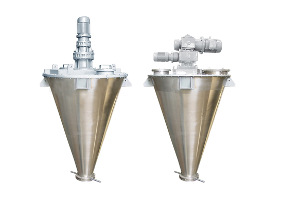 混合機(jī)根據(jù)物料性質(zhì)、啟動(dòng)方式、以及工藝要求配置不同功率、不同能力的驅(qū)動(dòng)裝置。 雙螺旋錐形混合機(jī)裝載專(zhuān)用的雙輸出減速機(jī)組合箱,采用擺線針輪、齒輪、蝸輪蝸桿形式組合定制而成。