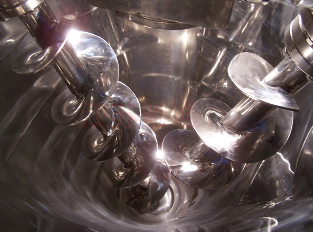 4.強(qiáng)大的輔助組件 雙螺旋錐形混合機(jī)加裝循環(huán)介質(zhì)夾套或蒸汽盤(pán)管夾套可實(shí)現(xiàn)在攪拌物料時(shí)的溫度控制。 混合機(jī)筒體與物料接觸面可增加針對(duì)物料性質(zhì)的防腐、防粘結(jié)、金屬隔離的涂層;攪拌螺旋可堆焊耐磨合金,用于磨損比較大的工況。添加少量液體時(shí),需配置噴液噴霧裝置,更有利于液體均勻的分散混合于主料內(nèi)。噴液系統(tǒng)由壓力源、儲(chǔ)液罐、噴頭三種基本組成模塊。