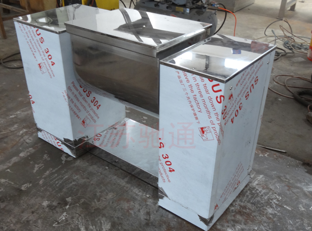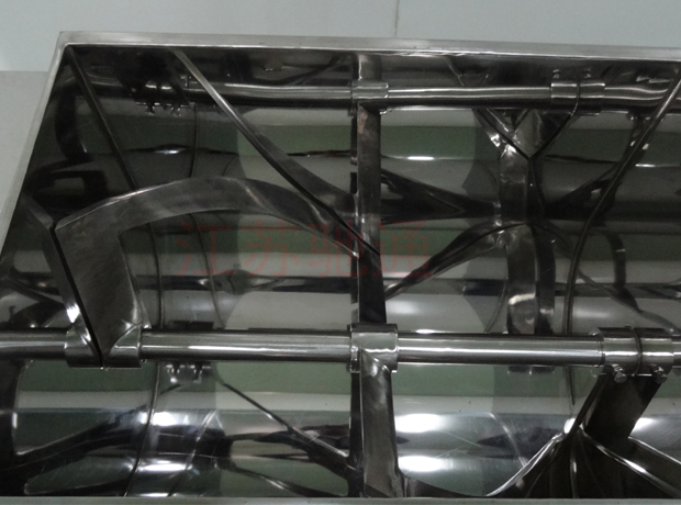 本機與物料接觸處均采用不銹鋼制造,槳葉與桶身間隙小,混合無死角,攪料軸兩端設有密封裝置,能防止物料外瀉。