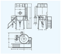 空氣經(jīng)過濾和加熱,進(jìn)入干燥器頂部空氣分配器,熱空氣呈螺旋狀均勻地進(jìn)入干燥室。料液經(jīng)塔體頂部的高速離心霧化器,(旋轉(zhuǎn))噴霧成極細(xì)微的霧狀液珠,與熱空氣并流接觸在極短的時間內(nèi)可干燥為成品。成品連續(xù)地由干燥塔底部和旋風(fēng)分離器中輸出,廢氣由風(fēng)機(jī)排空。