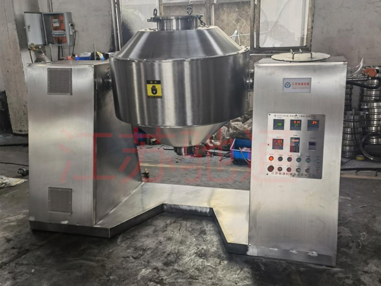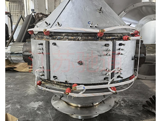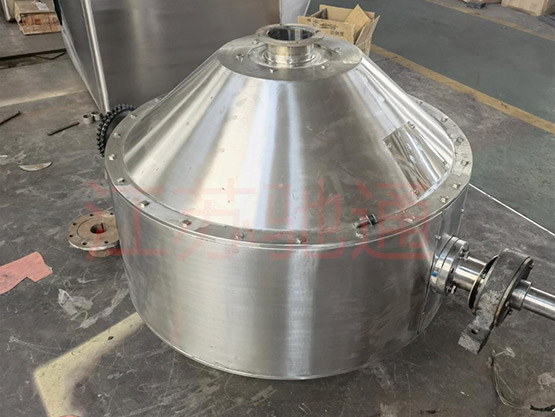 雙錐真空干燥機通過大小齒輪連接方式傳動,因而設備運行平穩(wěn)。特別設計的工裝,充分體現(xiàn)了兩支軸的良好同心,真空系統(tǒng)均采用可靠的機械密封,給電系統(tǒng)采用旋轉(zhuǎn)滑環(huán)。在此基礎上,熱媒采用特制電加熱板復合內(nèi)膽加熱,它既可調(diào)功率,又能進行分路控制電熱板加熱,從而達到罐內(nèi)物料均勻干燥效果。此雙錐真空干燥機特別適用于新能源與金屬粉末的干燥,解決了以往長時間使用導熱油加熱產(chǎn)生油垢而升不上溫度的缺點。該改良后的設備操作簡單,維護方便,使用壽命長。